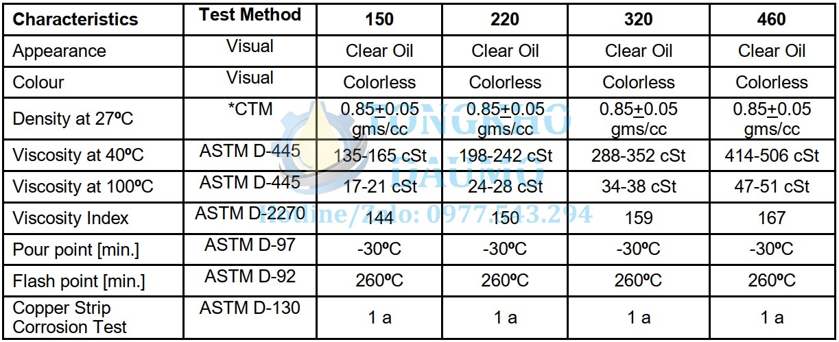 Thông số kỹ thuật của dầu bánh răng an toàn thực phẩm Molygraph Safol Gear Oil 460