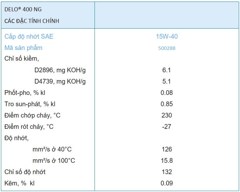 Delo® 400 NG được khuyến nghị sử dụng cho: