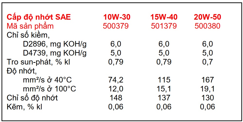 - Duy trì độ dày màng dầu ở nhiệt độ cao, đặc biệt tại vùng xéc-măng