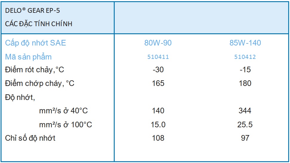 Đặc tính đa cấp giúp sản phẩm vận hành tốt trong khoảng nhiệt độ rộng, đảm bảo khả năng khởi động nguội tốt và bảo vệ bánh răng tối ưu.