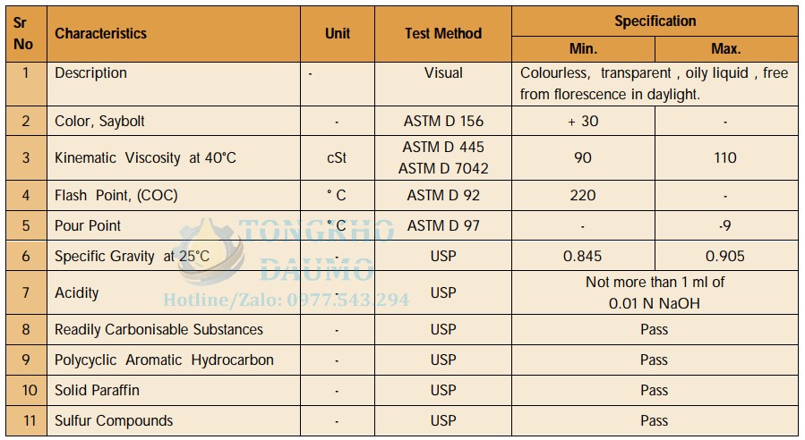 - US FDA 21 CFR 172.878 & 21 CFR 178.3620(a) – Dầu khoáng trắng