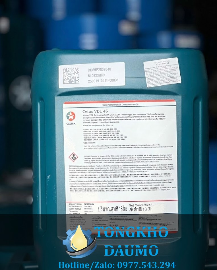 Caltex Cetus VDL 46 là dầu bôi trơn máy nén khí hiệu năng cao, được pha chế với Công nghệ VARTECH, kết hợp dầu gốc parafin chất lượng cao cùng hệ phụ gia đặc biệt nhằm tăng khả năng chống oxy hóa, chống ăn mòn, kiểm soát và giảm hình thành cặn vecni.