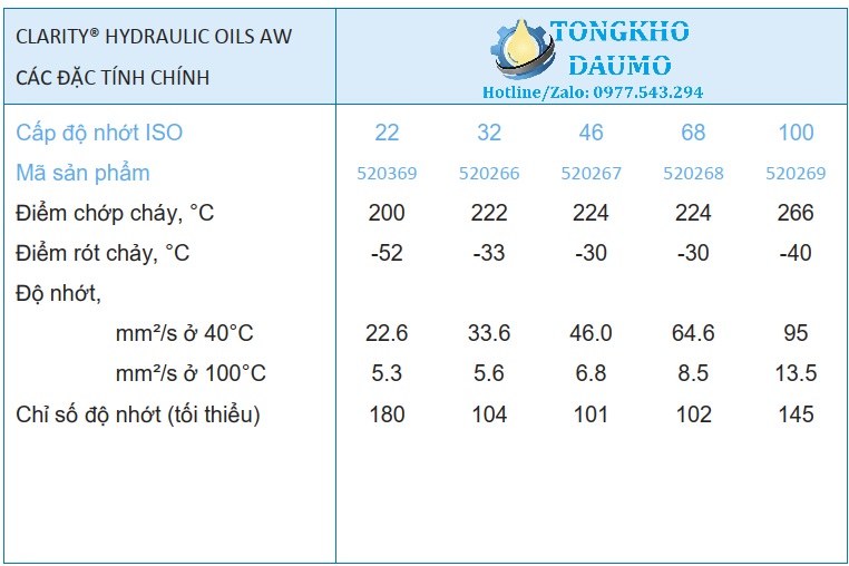 Từ khóa: dau thuy luc, caltex, dau thuy luc cong nghiep, nhot 10, clarity hydraulic oils aw, dầu thủy lực 32, dầu thủy lực caltex