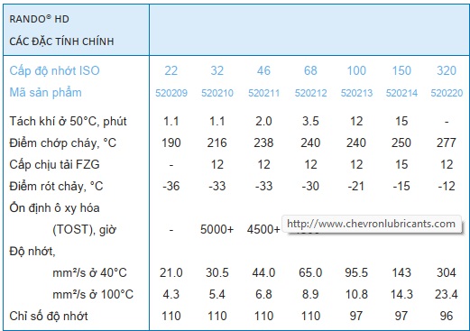 Caltex Rando HD có các cấp độ nhớt ISO: