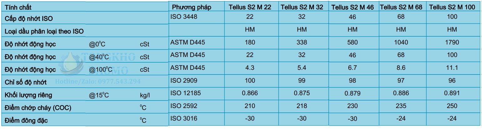 Thông số kỹ thuật của dầu thủy lực Shell Tellus S2 M