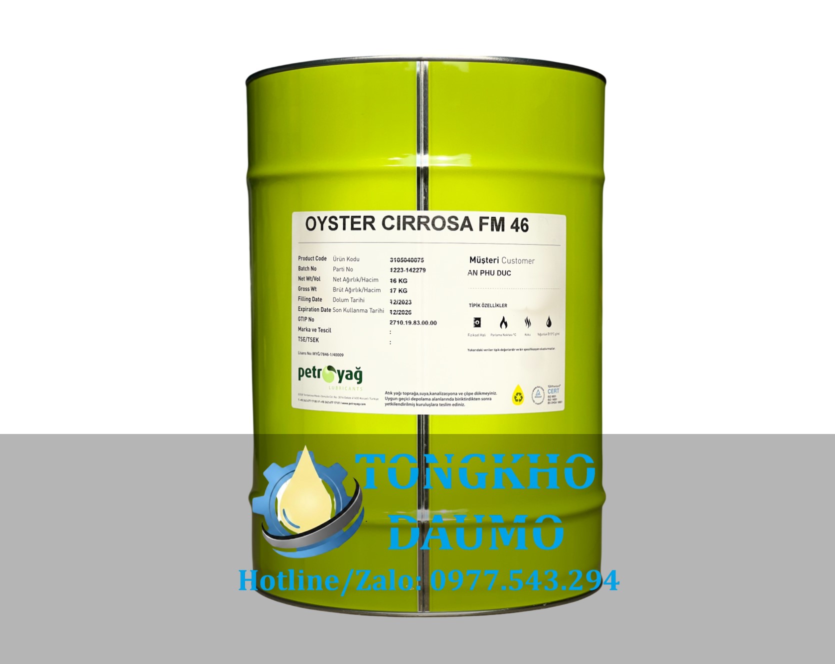 Petroyag Oyster Cirrosa FM 46 là dòng dầu khoáng không màu, không mùi, được sử dụng để bôi trơn các máy móc, hệ thống thủy lực trong ngành chế biến thực phẩm và đồ uống.