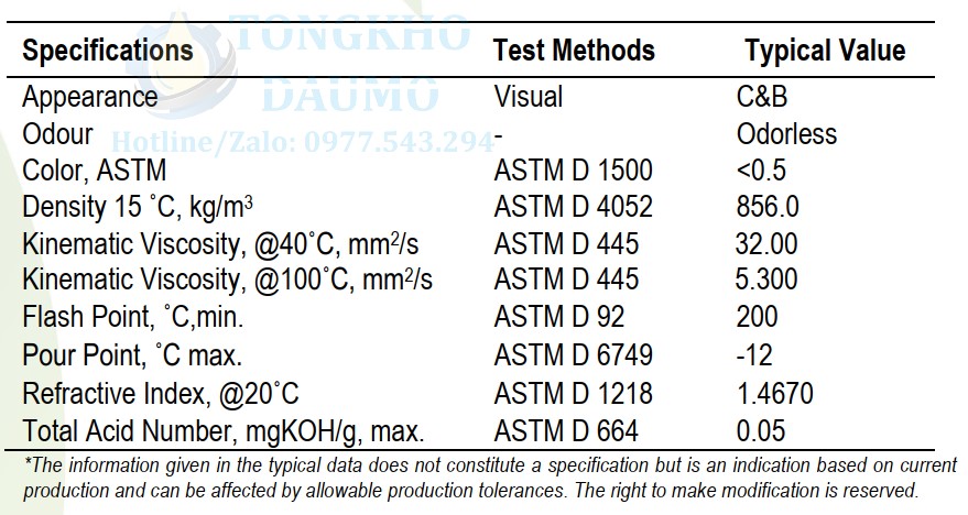 Thông số kỹ thuật của dầu truyền nhiệt Petroyag Latema FG 32