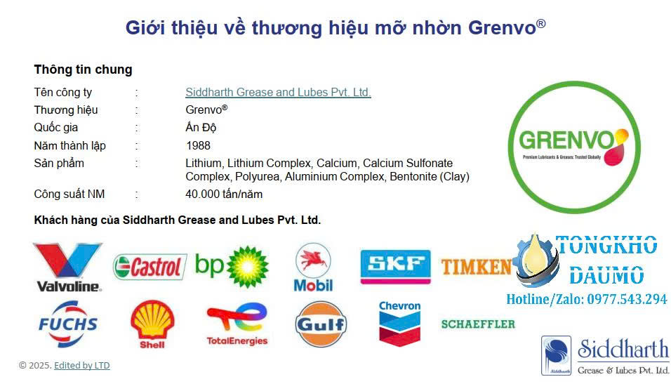 Với công nghệ sản xuất hiện đại, hệ thống nghiên cứu phát triển mạnh và kinh nghiệm hơn 35 năm trong ngành, mỡ Grenvo là lựa chọn đáng tin cậy để thay thế nhiều loại mỡ bôi trơn khác trên thị trường, mang lại hiệu quả bôi trơn ổn định và chi phí hợp lý cho doanh nghiệp.