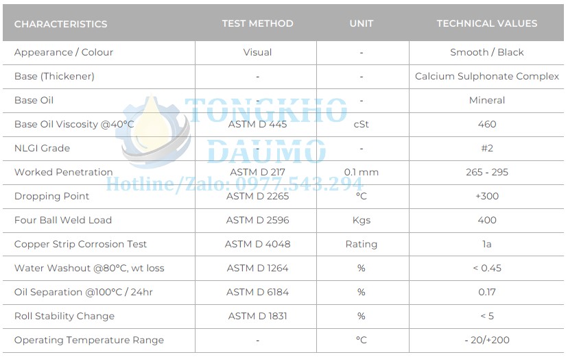 Từ khóa: mỡ bôi trơn, mỡ chịu nhiệt, mỡ chịu tải, mỡ kháng nước, calcium sulfonate, molygraph, mỡ chịu cực áp ep, 200 độ C