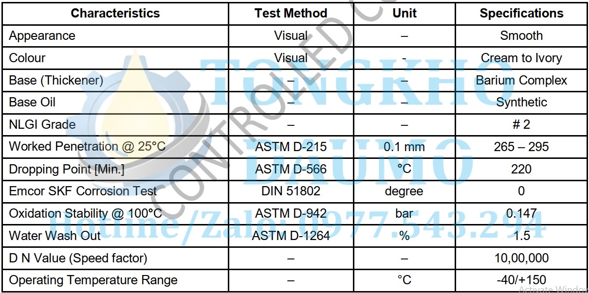 Thông số kỹ thuật của mỡ tốc độ cao Molygraph Ultrasyn 9090