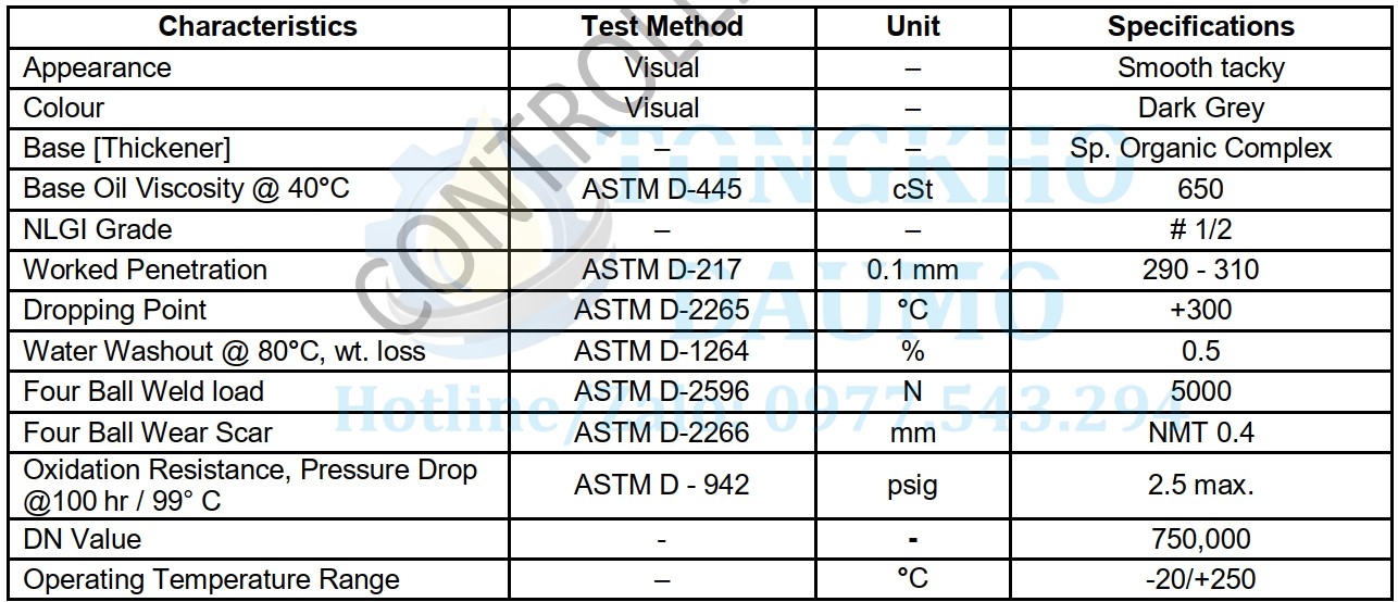 Thông số kỹ thuật của mỡ chịu nhiệt Molygraph SGHM 650