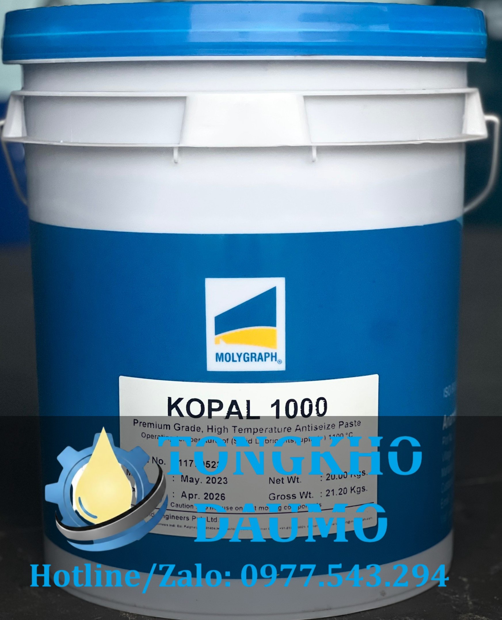 Mỡ Molygraph Kopal 1000 là mỡ đồng chịu nhiệt lên đến 1100 độ C, mỡ có tính dẫn điện tốt. Mỡ thường được sử dụng để bôi chống kẹt bulong, ốc vít, khớp nối, van, mỡ còn có khả năng chống hàn dính đầu Nozzle máy đùn nhôm…